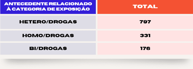 A maior taxa de contaminação ocorre entre homens jovens heterossexuais, esse grupo concentra o maior número de casos por reunir fatores como: maior exposição em relações sexuais desprotegidas, baixa percepção de risco e menor adesão à testagem periódica. Os dados mostram ainda que o uso de drogas é um fator comum que antecede a exposição, no caso do vírus HIV.